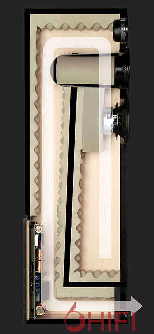 PMC能夠比同級喇叭更全面,原因還是在于ATL(Advanced Transmission Line)「先進傳輸線式設計」。傳輸線式設計其實就是低音反射式音箱的變形,它把音箱內部仔細規劃成冗長的傳輸通道,并在通道內填滿適當的阻尼物,讓聲波「有計畫地」在通道里前進,效果就是低頻量感與延伸都增加了,效率也更好了,而且不同音量下仍能維持均衡與低失真。